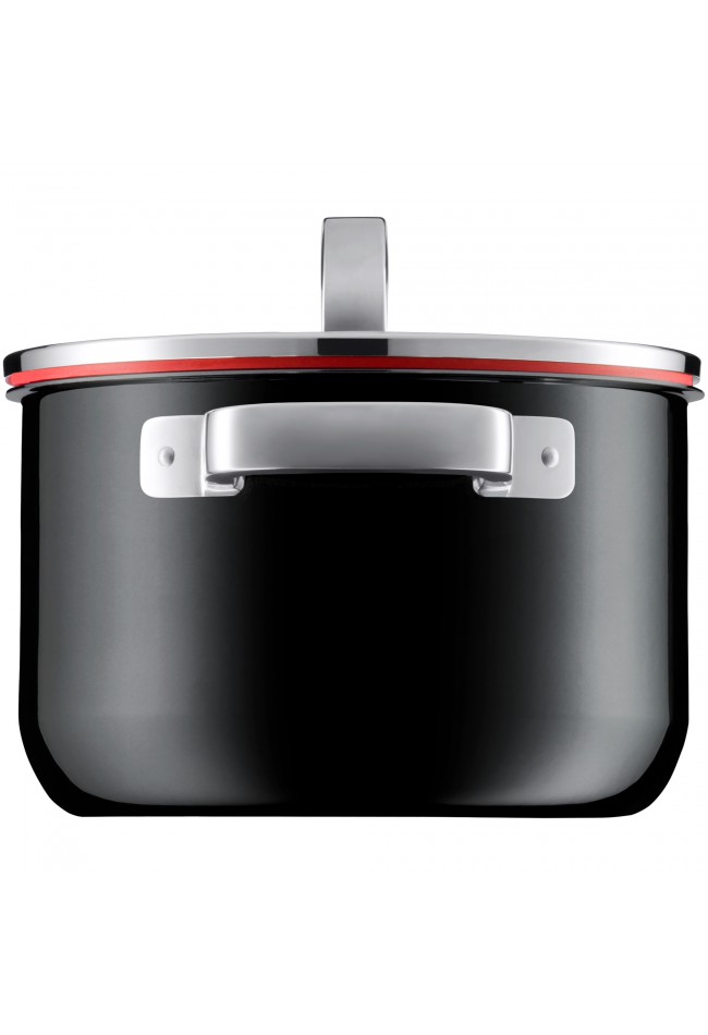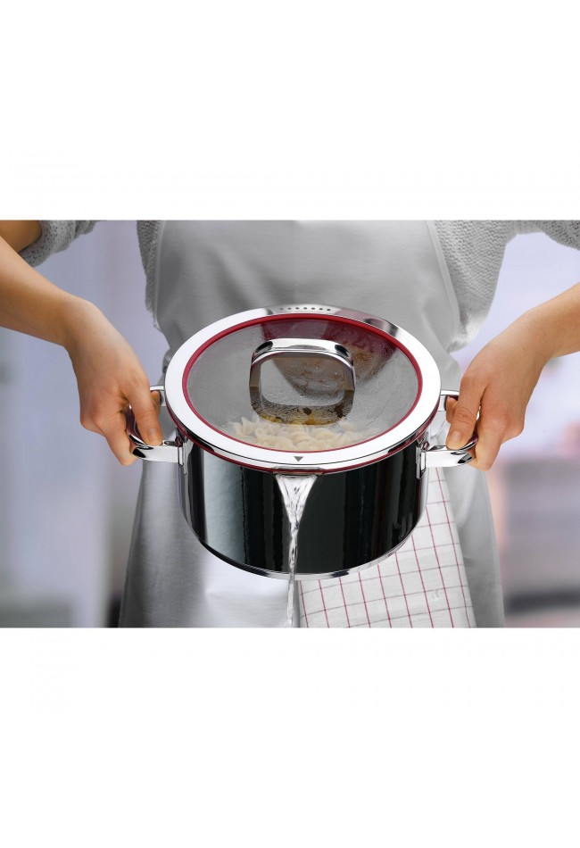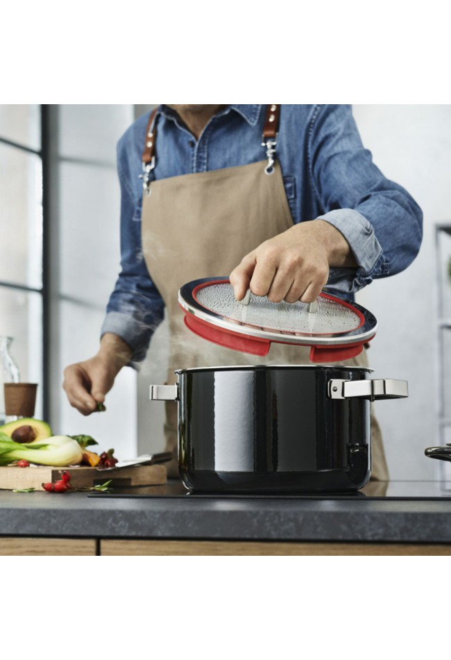 Raudonas silikoninis dangčio žiedas atkreipia akis į FUNCTIONAL puodų elegantišką prabangą.