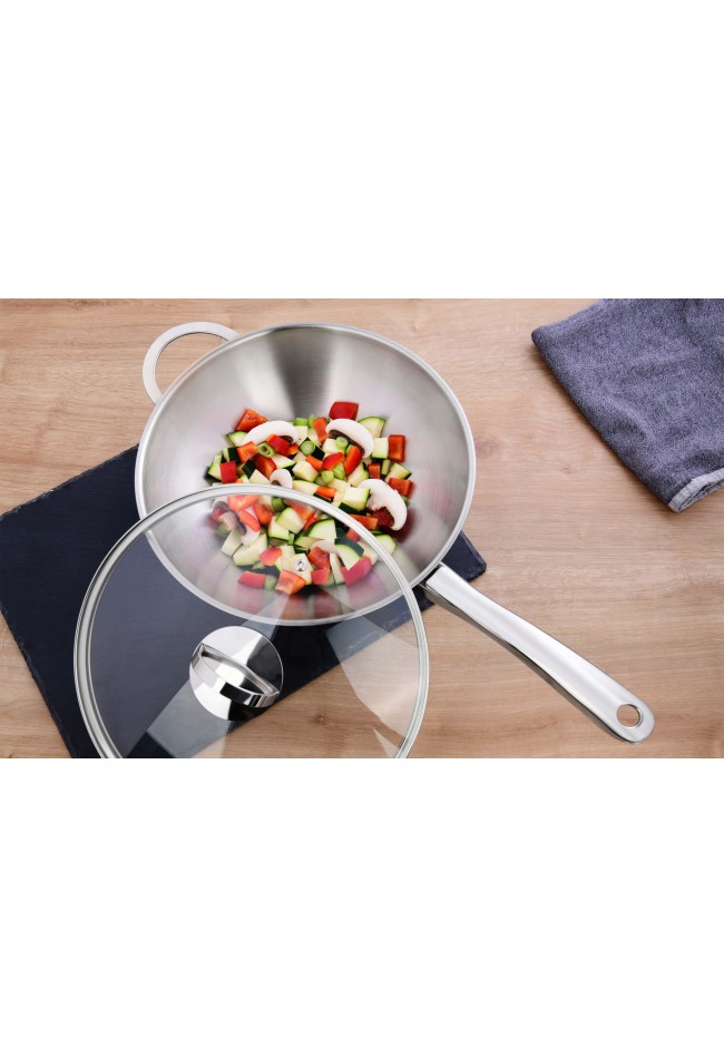 GRÄWE klasikinė nerūdijančio plieno WOK keptuvė su dangčiu.