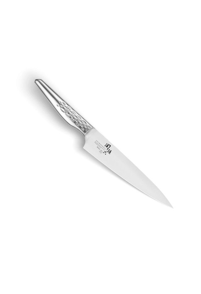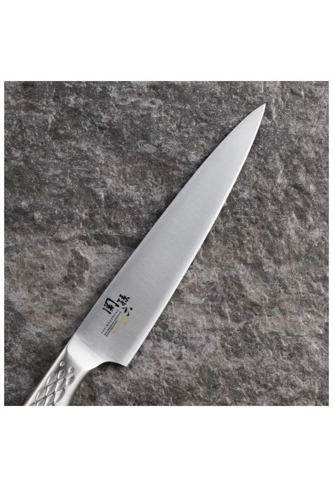 SHOSO SEKI MAGAROKU profesionalių peilių linija nepriekaištingai pagaminta iš vientiso plieno, turi aptakią ir dailią formą, užtikrina patogų ir higienišką naudojimą, pjauna tiksliai ir švariai.