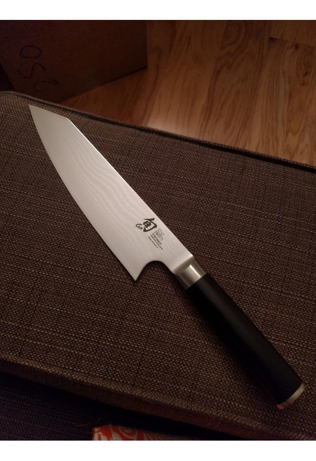 KIRITSUKE ašmenų forma su smailėjančiu galu leidžia pjauti, skusti, porcijuoti ir net filiuoti.