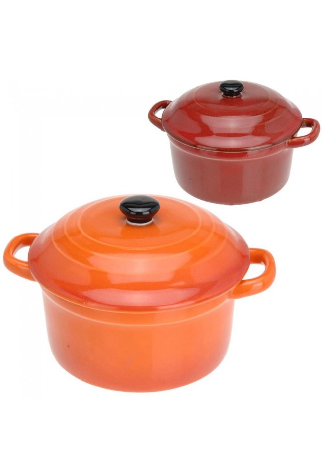 Pagaminta iš aukštos kokybės spalvoto porceliano. Atrodys gražiai ant stalo ir vienodai iškeps iš visų pusių. Indeliai yra dviejų skirtingų spalvų - oranžinės arba raudonos.