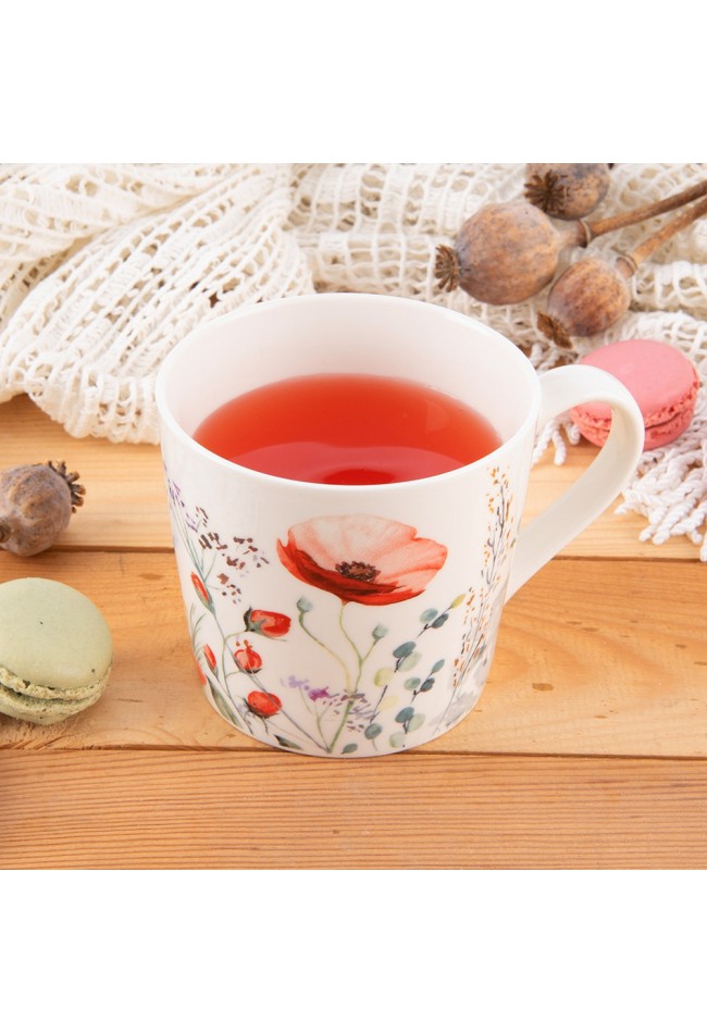 FLOWERS POPPY - AGUONOS serijos puodelis su gėlių motyvu.