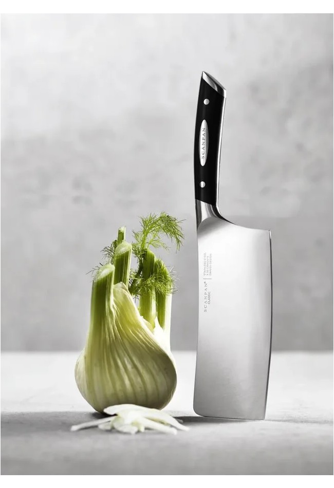 SCANPAN CLASSIC platus kinų virėjo peilis nepriekaištingai pagamintas iš vientiso plieno.