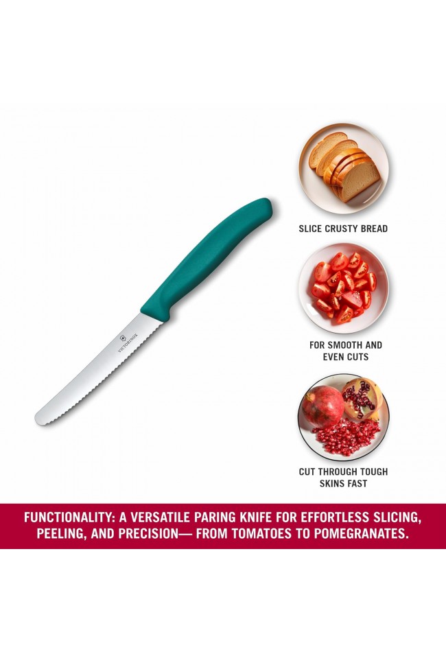 Itin universalus peilis su kuriuo atliksite įvairius smulkiuosius ir kruopščiuosius virtuvės darbus. Aštrūs ašmenys su dantukais, užtikrins kad pjūvio vieta bus maksimaliai tiksli ir švari.