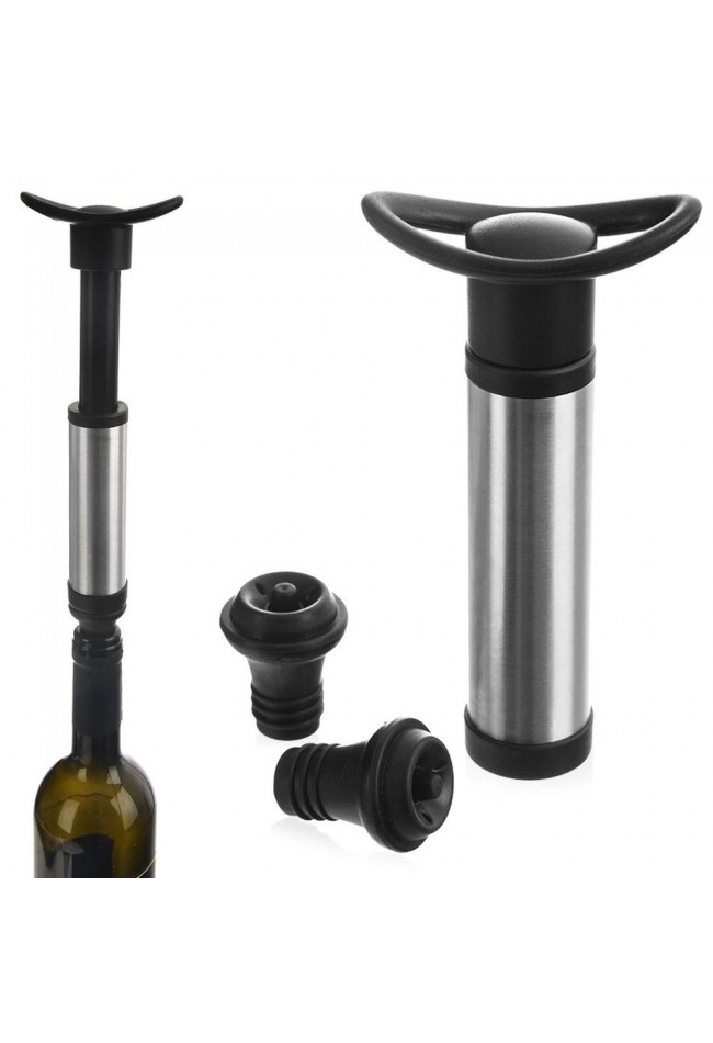 PAPRASTA NAUDOTI – įdėkite kamštį į butelį ir pompa ištraukite orą. Spragtelėjimo garsas reikš, jog pasiekėte optimalų vakuumo lygį. Vakuumas sulėtina oksidacijos procesą, taip išlaikydamas geriausias vyno savybes ir atidarytas vynas ilgiau išlieka šviežias.