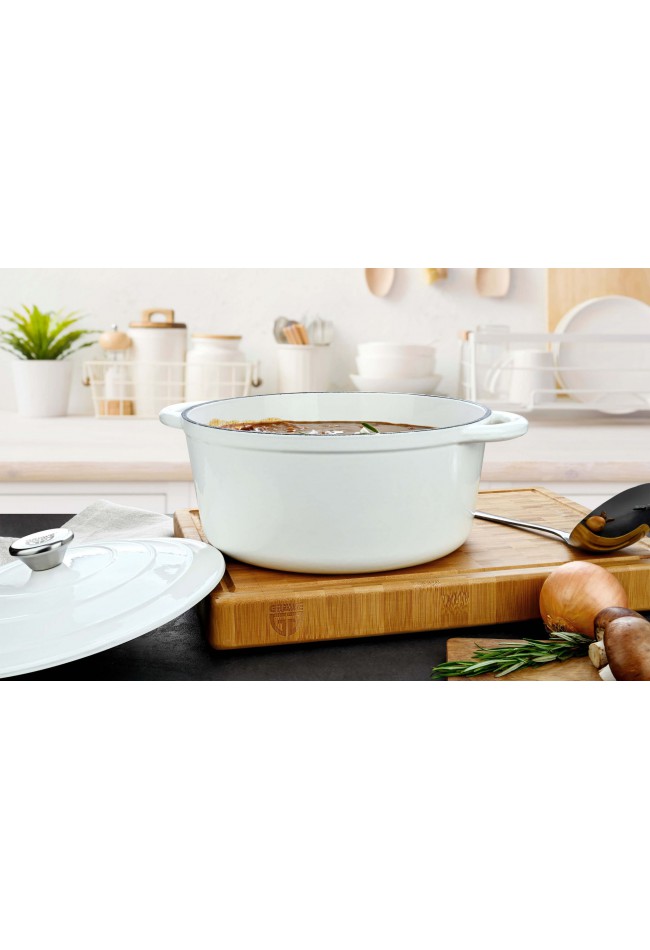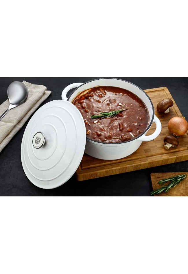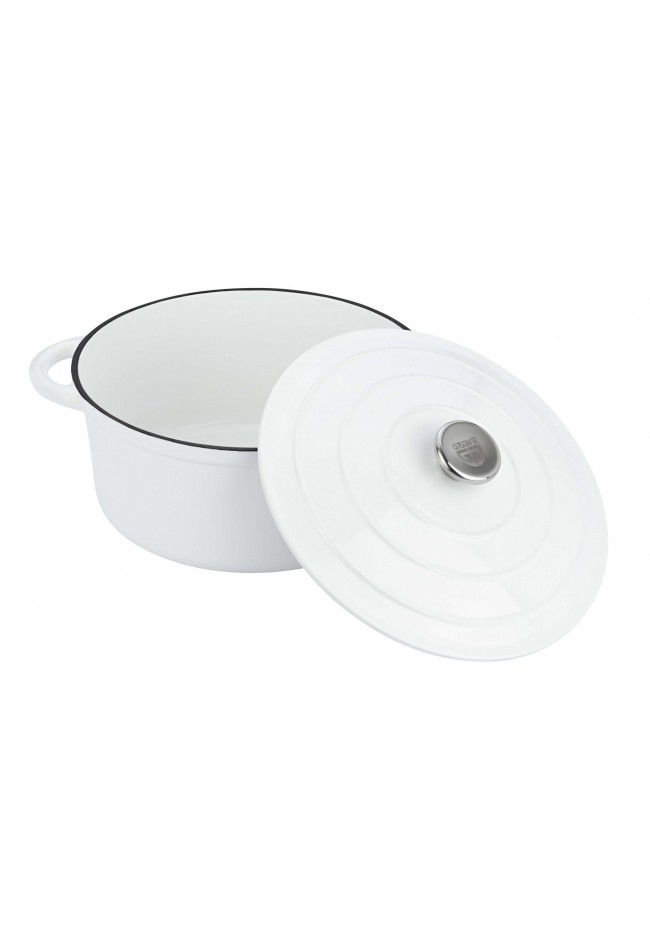 GRÄWE ketaus / špižinis puodas su dangčiu pasižymi klasikine apvalia ketaus forma, tvirta kokybe ir elegantiška emalio danga.